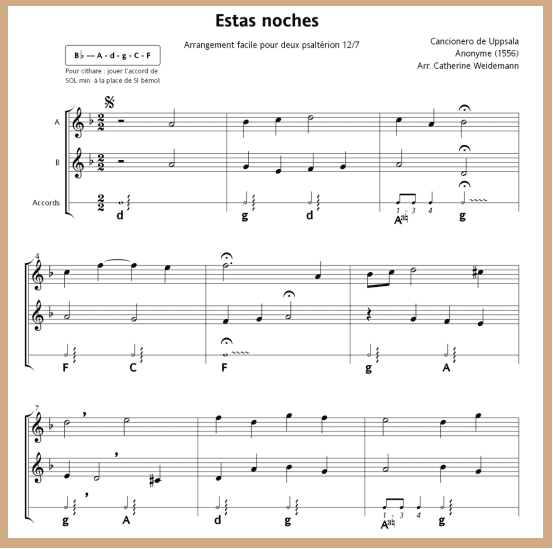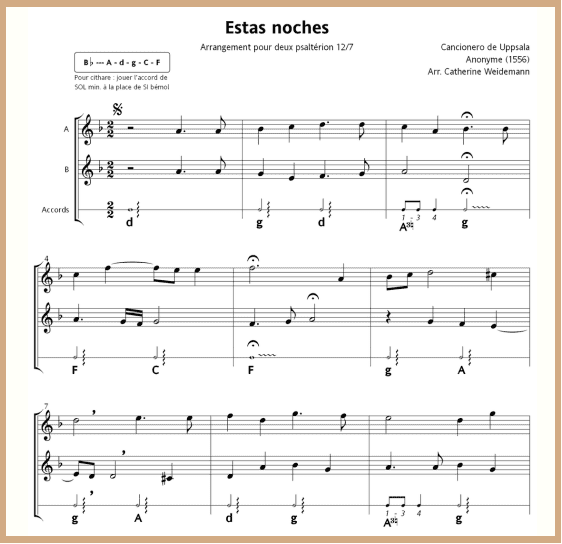 C’est une attention que nous saluons avec gratitude. Deux voix se répondent et s’entrelacent, créant ce jeu subtil de la polyphonie de cette époque que nous pouvons savourer sur nos cithares. Et cerise sur le gâteau pour les groupes, deux des partitions sont à deux voix !