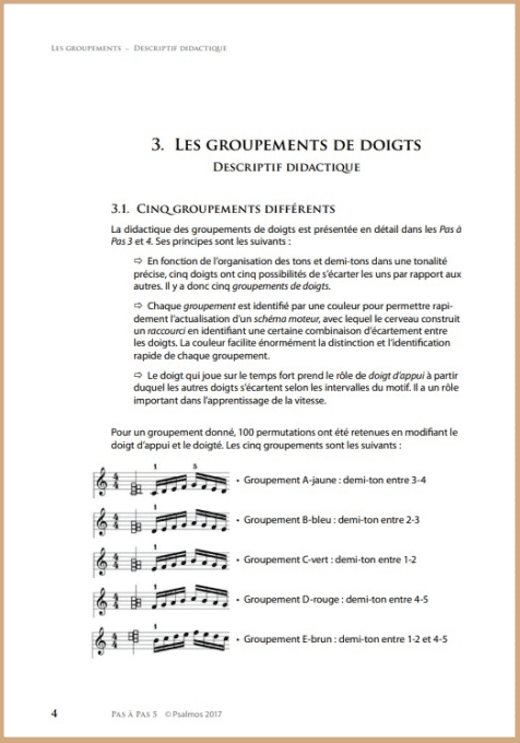 Dans ce Pas à Pas 6, trois chapitres progressifs analysent la spécificité des groupements avec un doigt d’appui. La conscience des intervalles est complexe :